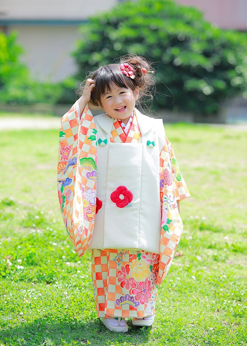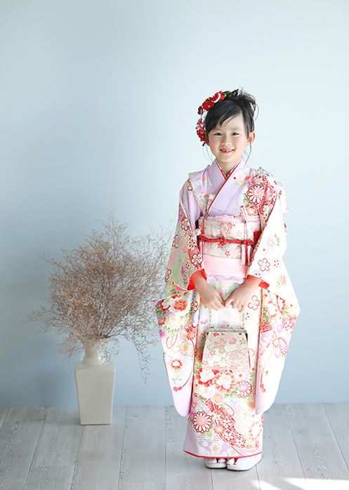 【着物一式(7才)】着物・帯・帯〆・帯揚・長襦袢・しごき・腰紐3本・コーリンベルト・筥迫・扇子・髪飾り・草履・バッグ