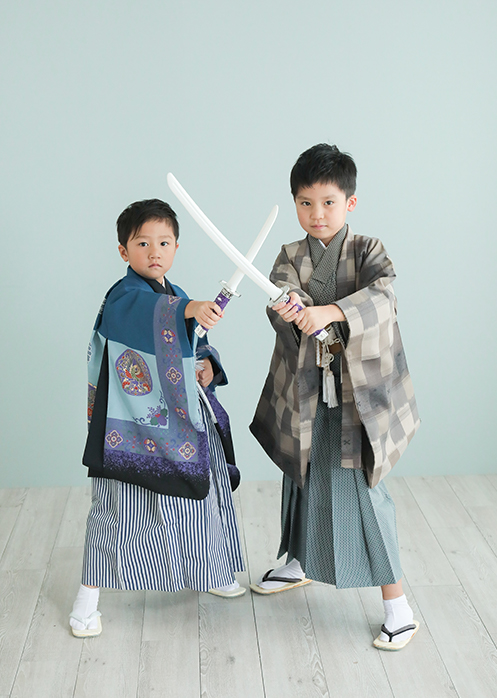 【着物一式(3才・5才)】紋付・袴・羽織紐・角帯・長襦袢・懐剣・白扇・雪駄・腰紐3本・お守り