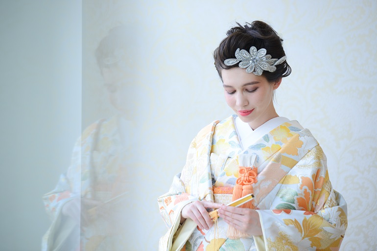 色打掛は、掛下やヘッドアクセサリーなどのアレンジでガラリと印象を変えることができます。