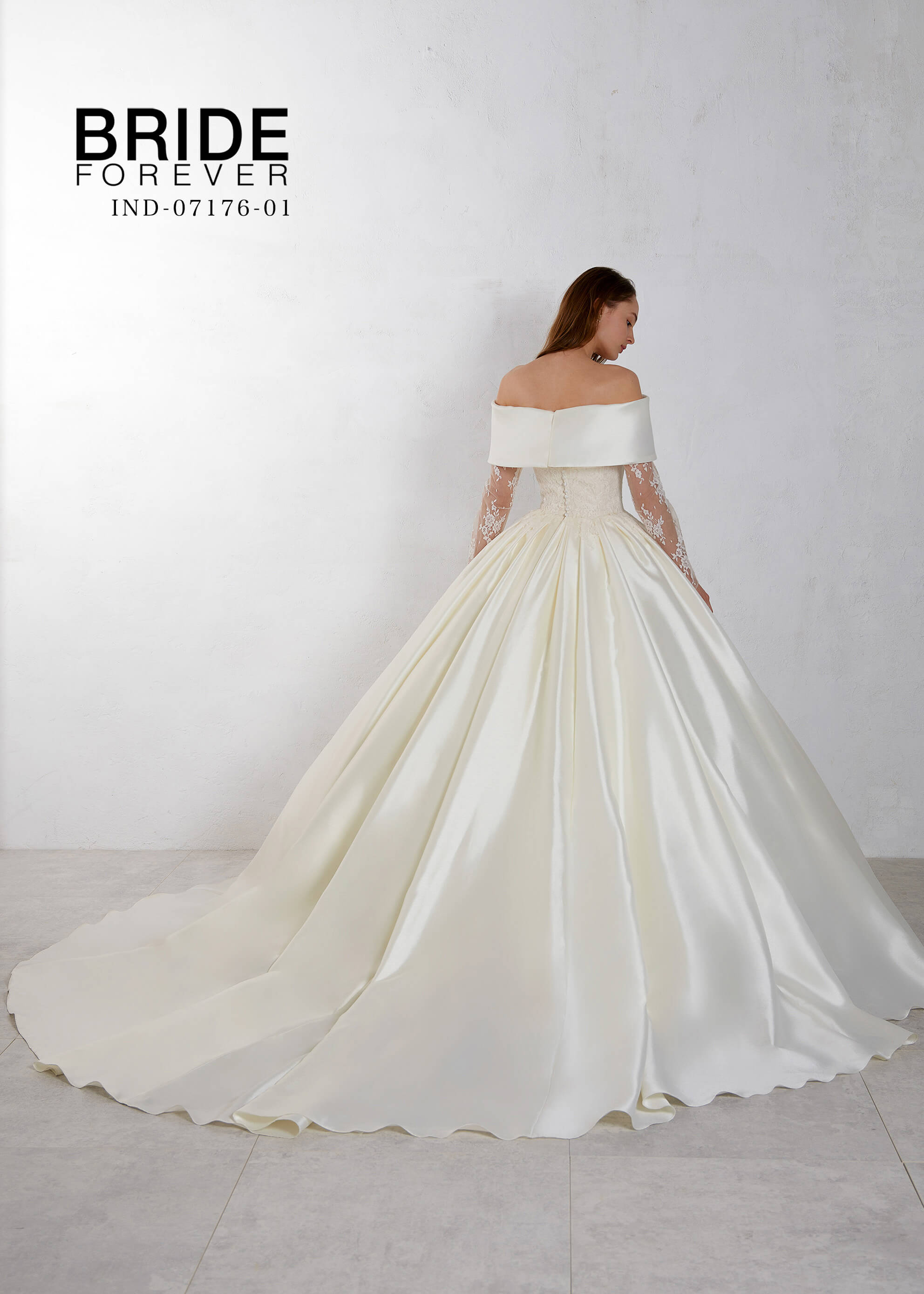 ロールカラーの袖も取り外し可能な為、花嫁様のお好みに合わせて着て頂けます。