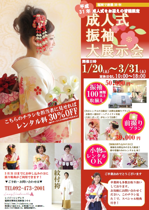 平成31年に成人式をお迎えの方限定の振袖大展示会を開催中です。
