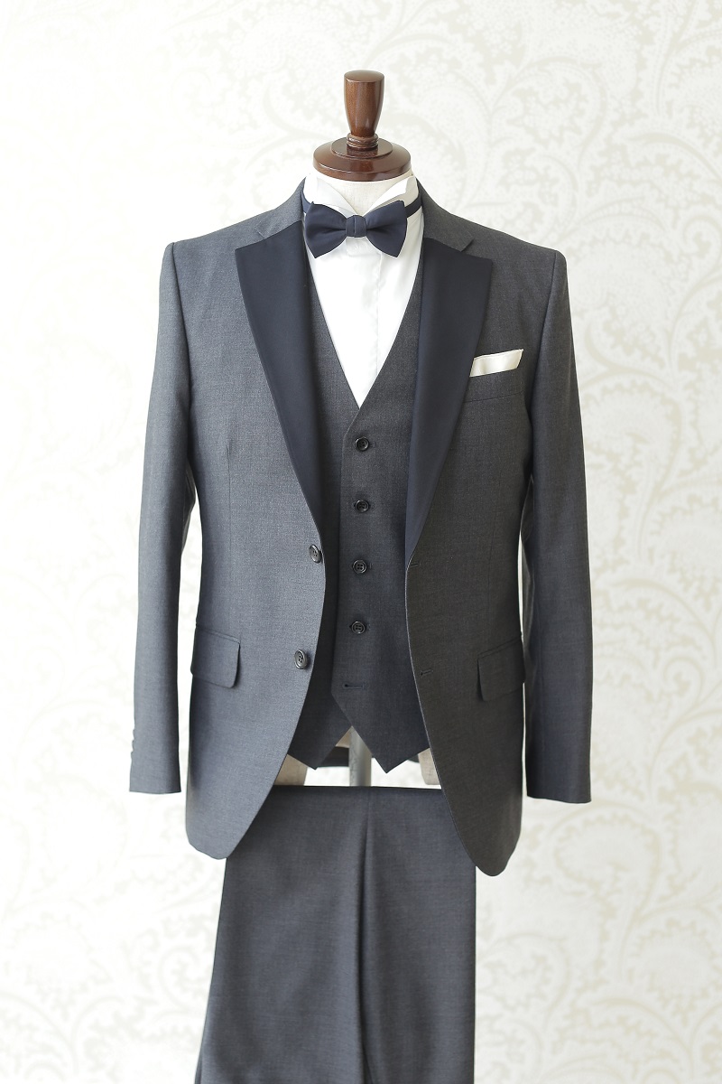 シンプルなグレータキシード。ベストはリバーシブル。