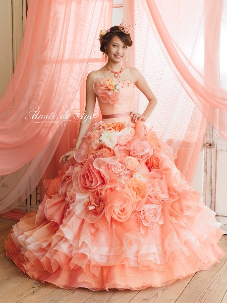 歩くたびに繊細なきらめきを放ち上品にエレガントに花嫁を彩る一着。