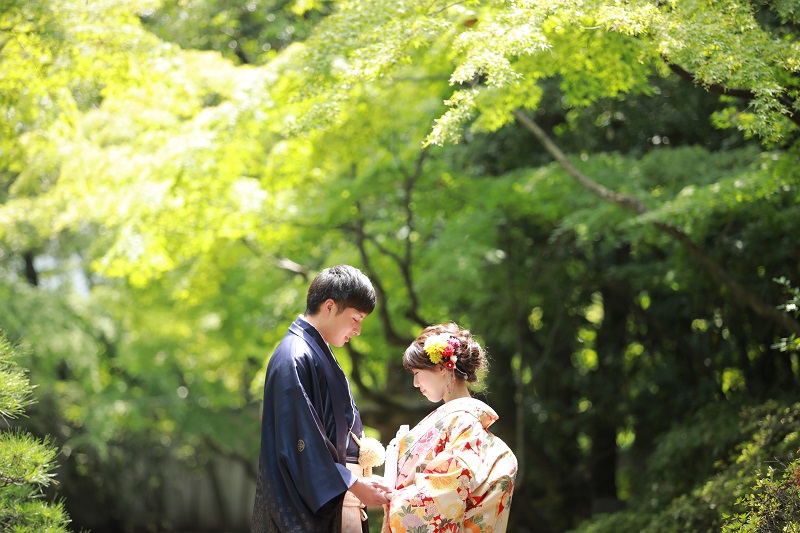 当日は、お召にならない白打掛、色打掛での前撮りを友泉亭で行いました。