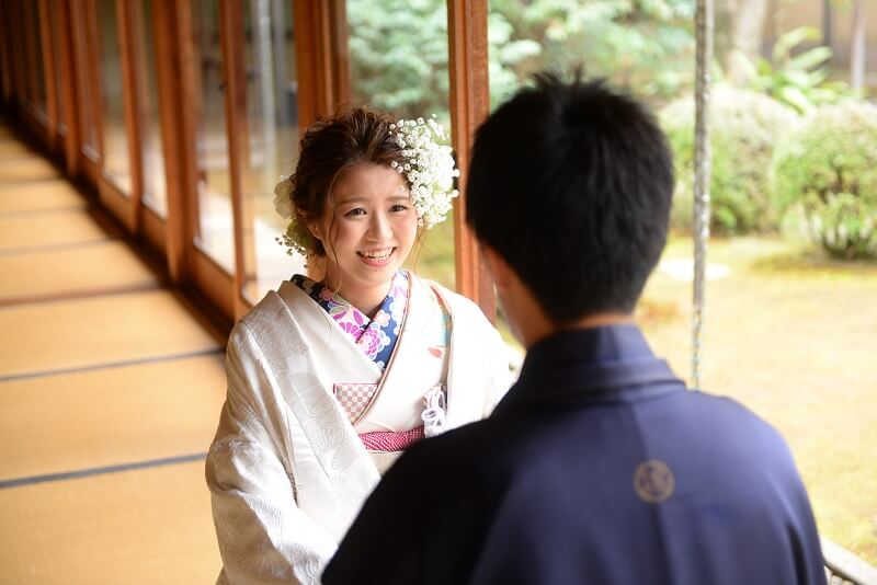やわらかい顔立ちの新婦様には、色味も優しいパステルを選び、和装小物でメリハリを