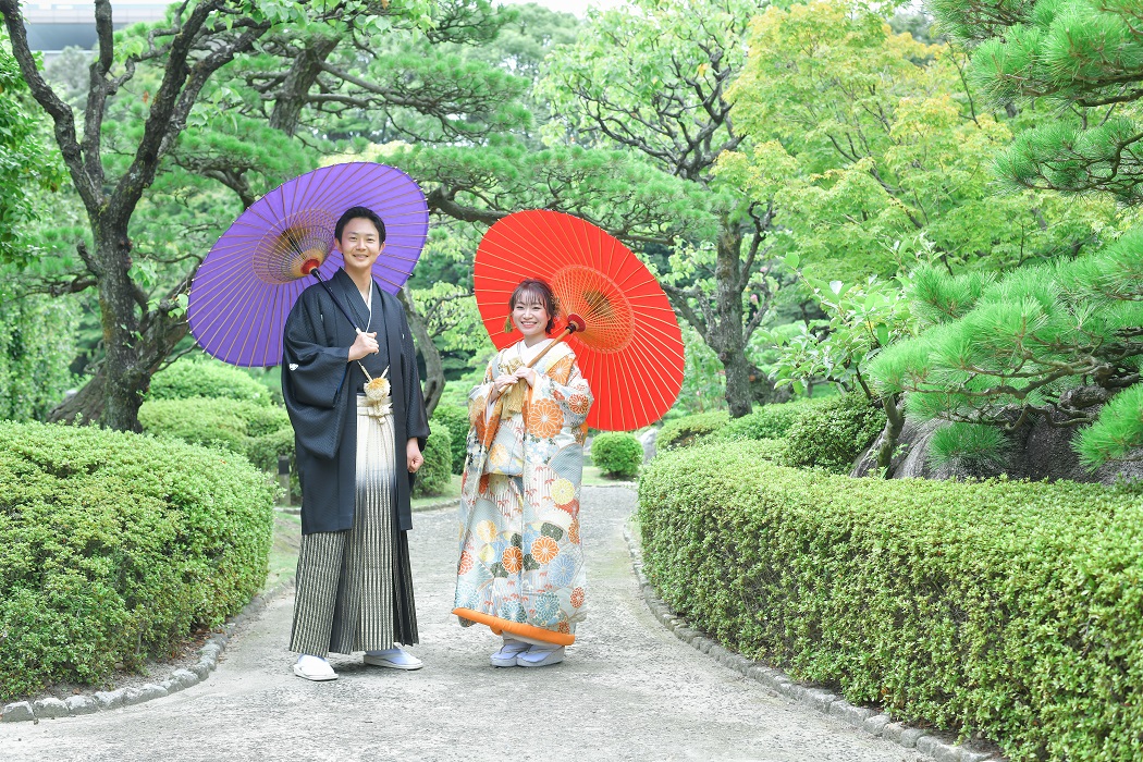 紙風船のカラフルさと丸みが和の装いに動きを与えてくれます