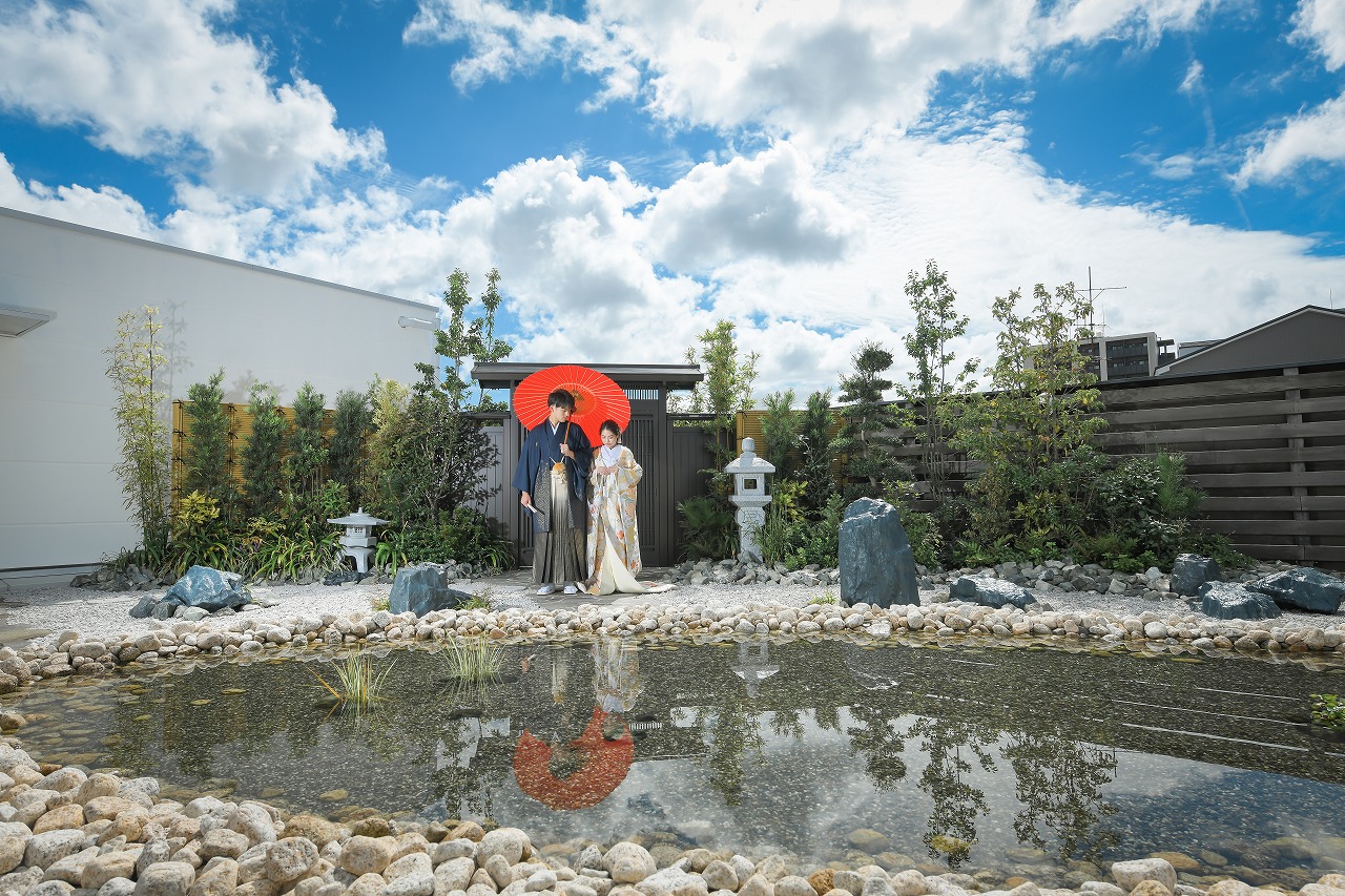 リニューアルオープンした屋上庭園では、ロケーションに行かなくても庭園さながらの迫力あるショットの撮影が可能です。5階建ての屋上ならではの青空に近い広々とした撮影を楽しめます。